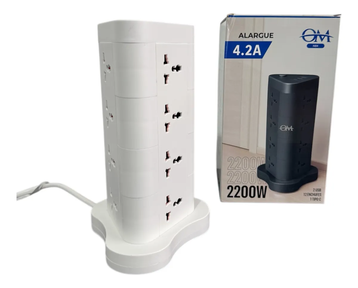 ALARGUE TORRE 12 TOMAS + 2 USB + 1 TIPO C 2200W OM-N84