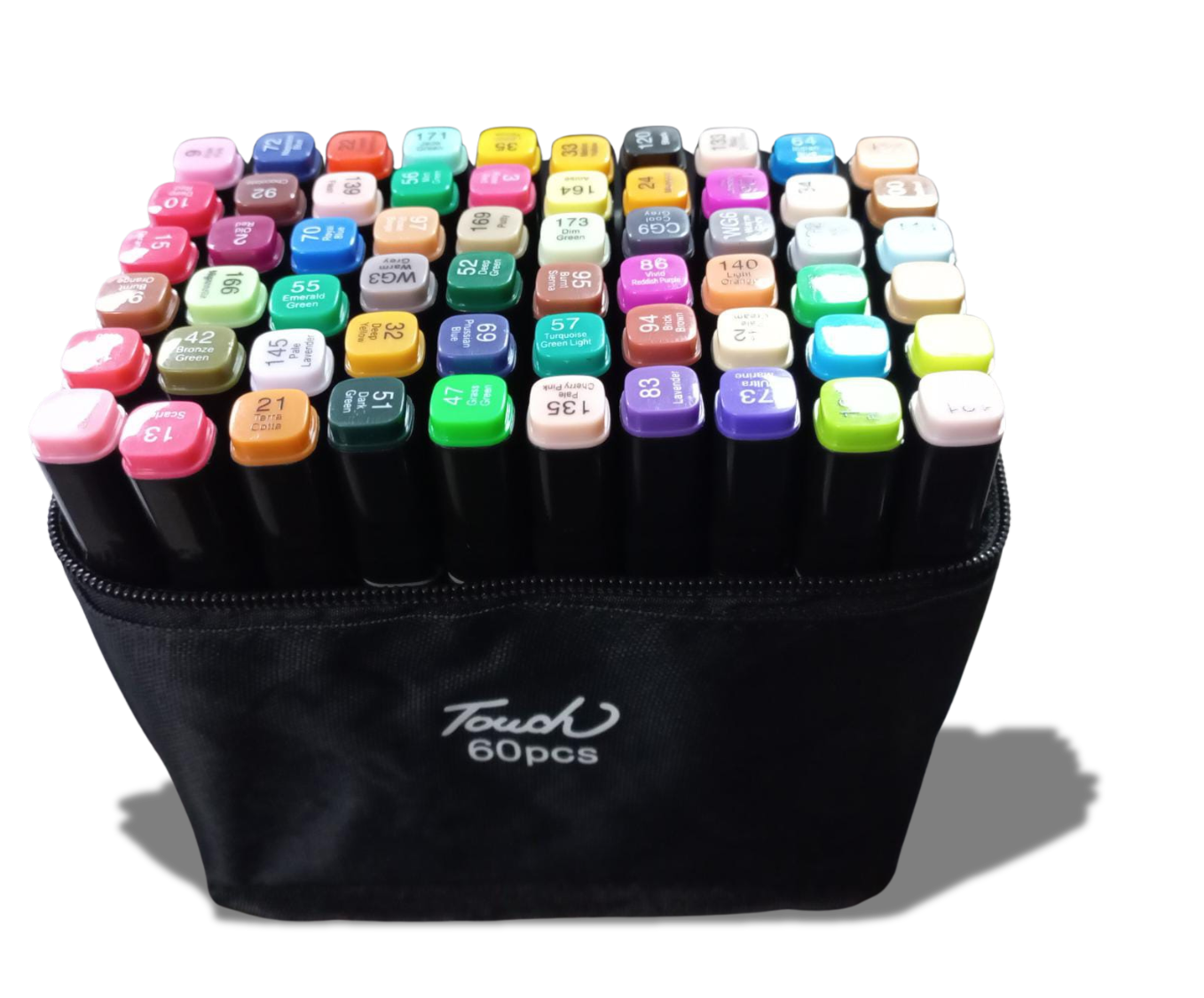 bolso con 60 marcadores doble punta
