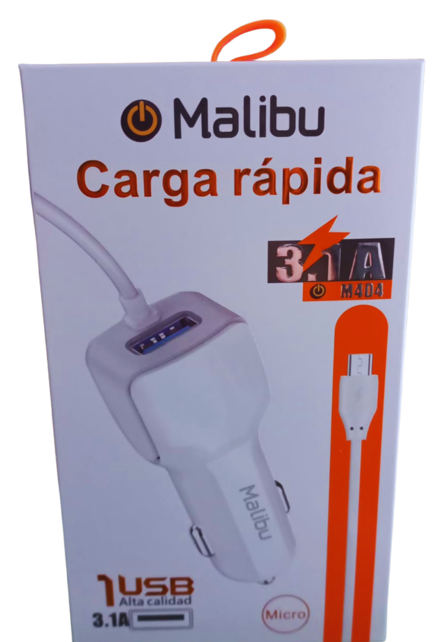 cargador de auto malibu 3.1 a micro usb mas puerto usb
