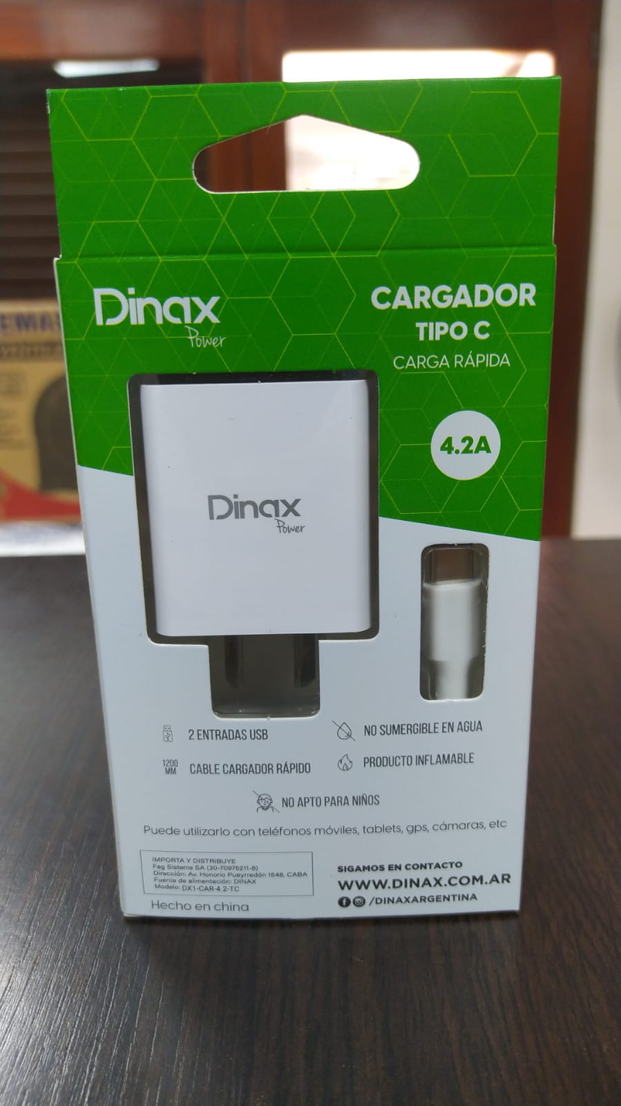 cargador dinax tipo c 4.2 am 2 usb