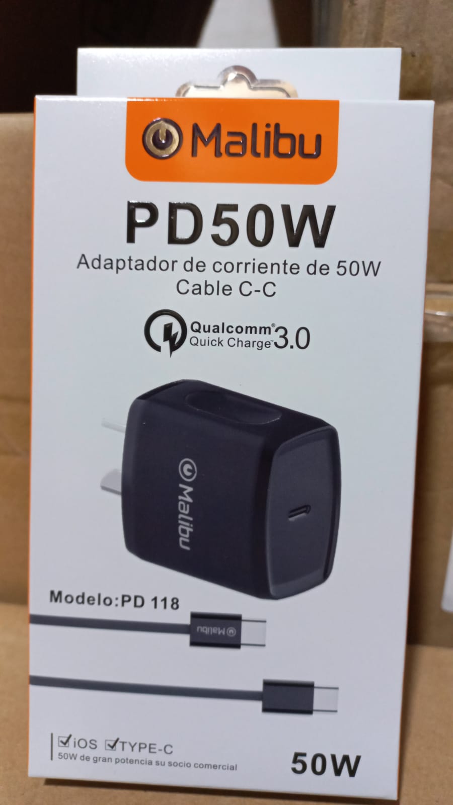 CARGADOR TIPO C A TIPO C 50 W PD118-C MALIBU