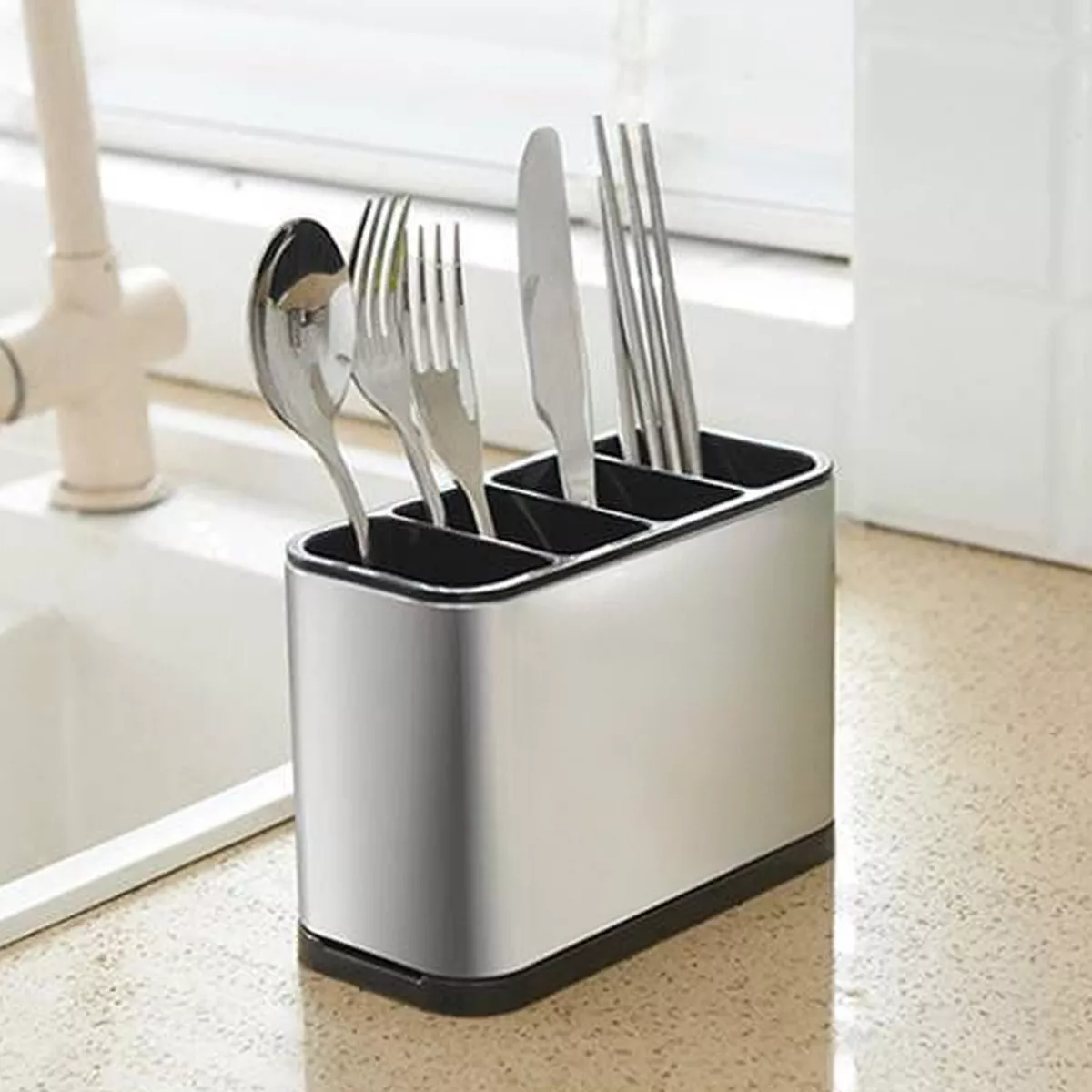 Cubertero, escurridor de fregadero de acero inoxidable, color plateado