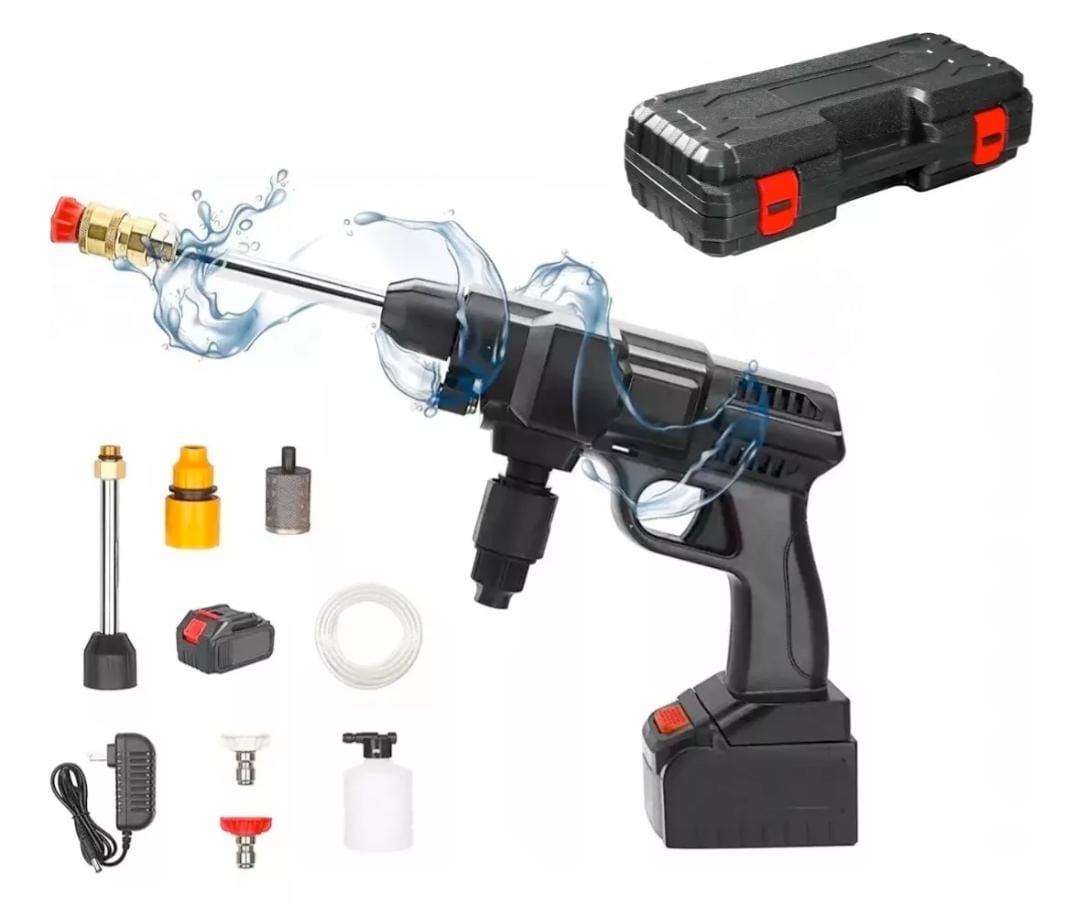 La hidrolavadora eléctrica portátil es perfecta para llevar a cualquier lugar y realizar trabajos de limpieza con facilidad. Su diseño inalámbrico, ligero y compacto permite limpiar todos tus espacios y equipos al aire libre de manera rápida y sencilla.