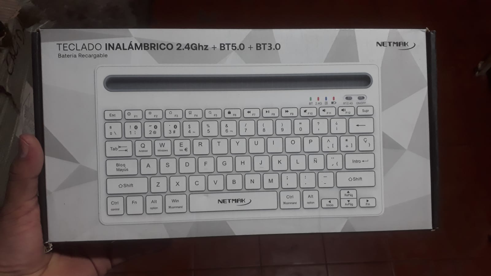 TECLADO INALAMBRICO 24GHZ Y BLUETHOOT 5.0 NETMAK BLANCO SLIM